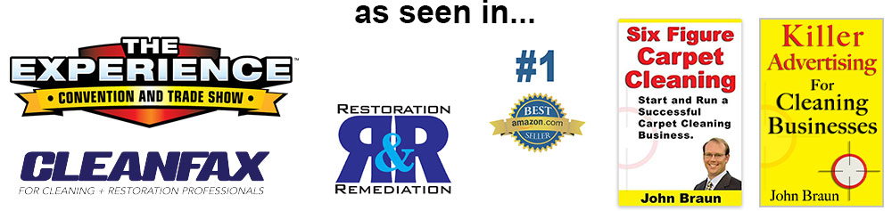 John has been a featured speaker or writer with Cleanfax Magazine, R&R Magazine, Hydramaster, Encapalooza, Interlink, Truckmount Forums, Phenomenal Products, and The Experience Cleaning Convention. Additionally, he has written two best-selling cleaning marketing books on Amazon. John uses the philosophy “Target Clients Profitably” to grow cleaning businesses like never before.